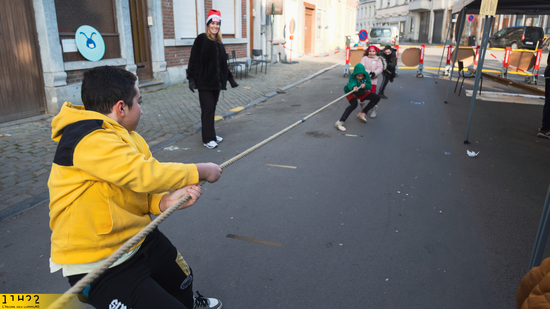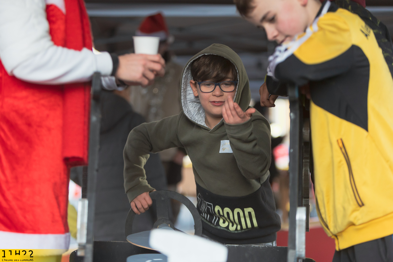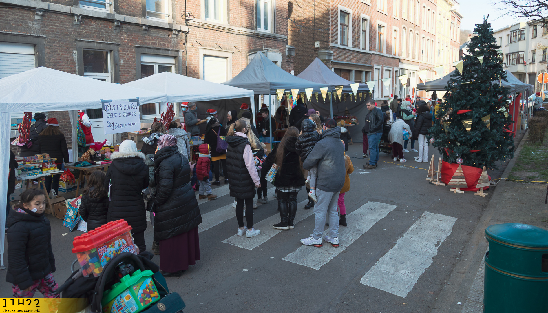 Au programme : distribution de centaines de cadeaux, kermesse de quartier, ateliers créatifs et distribution de chocolat chaud, biscuits,… Le tout gratuitement et encadrés par une quarantaine de lutins de Noël qui ont ensuite circulé dans tout le quartier pour une parade musicale et lumineuse.