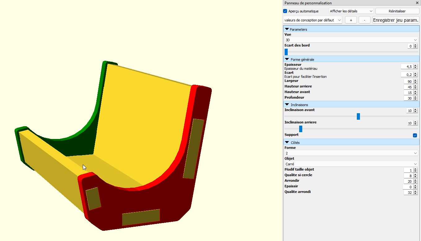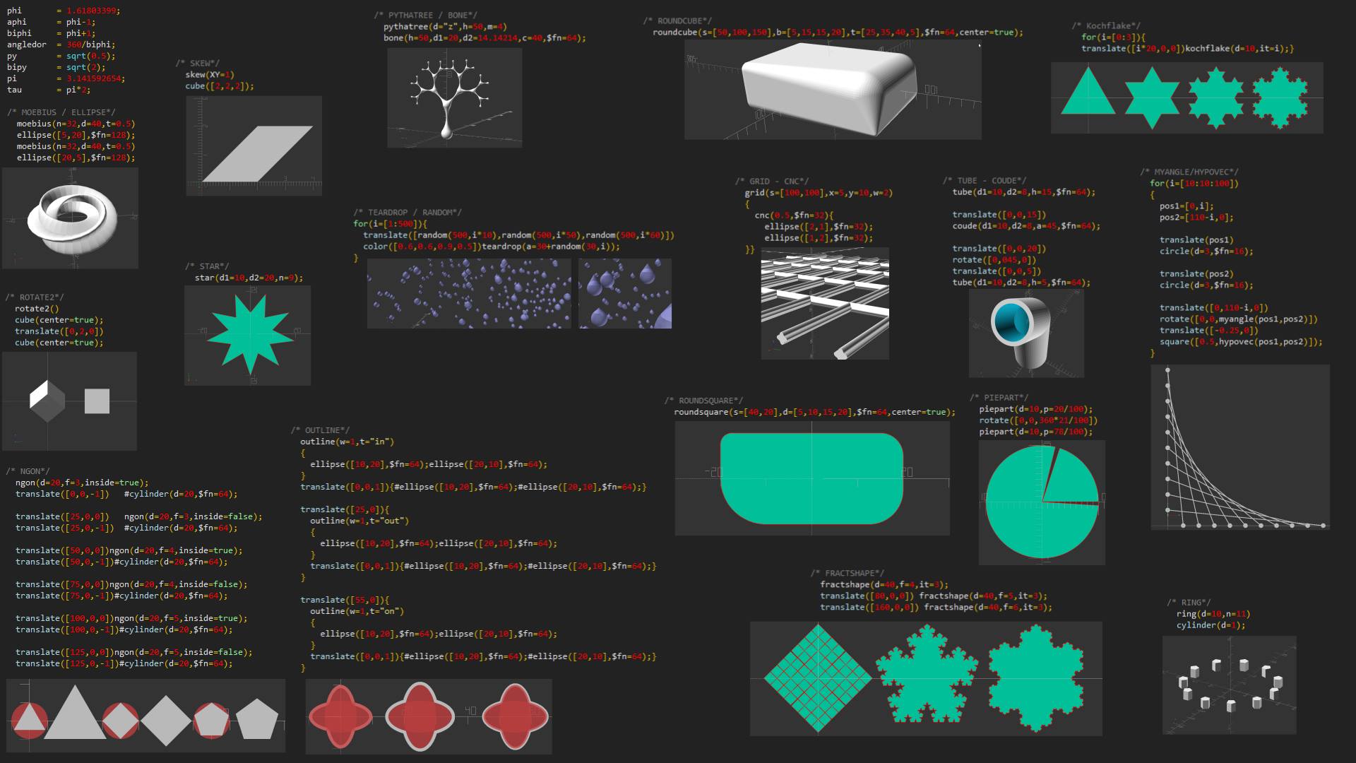 Les scripts OpenSCAD servent de base aux générateurs proposés sur le site Thingiverse 1) ainsi qu'à la nouvelle plateforme SOL75 2).