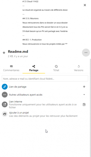 Pour chaque fichier, il est possible de créer un canal de discussion Talk.